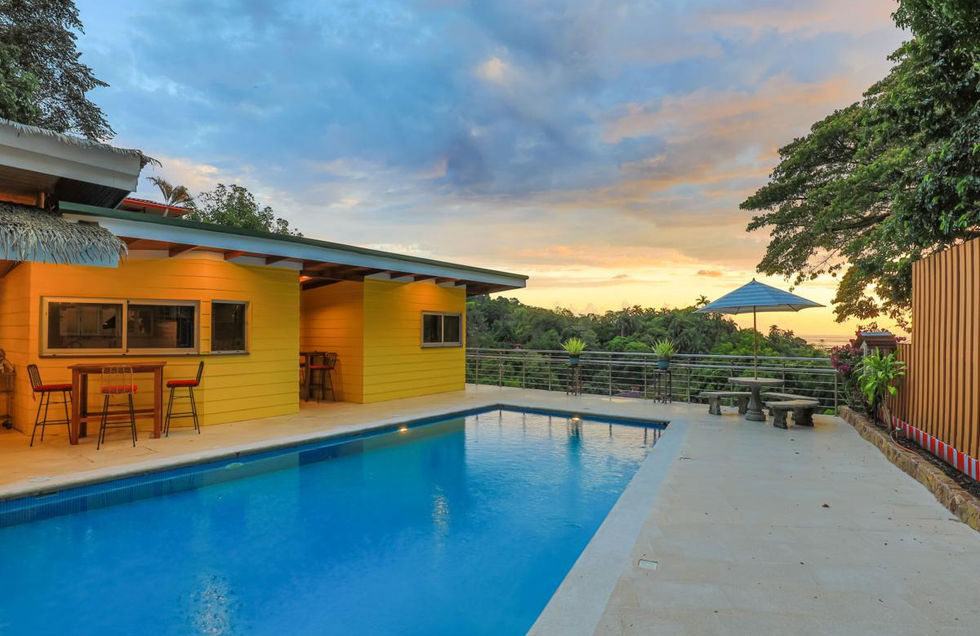 Upstairs, you'll find two principal bedrooms, each with its own ensuite, along with two additional bedrooms and a full bathroom. An office with an ocean view provides a perfect space for remote work or quiet relaxation. Step outside to enjoy the large balcony area with stunning sunset views, or head to the entertainment area with its own kitchen, perfect for hosting guests.