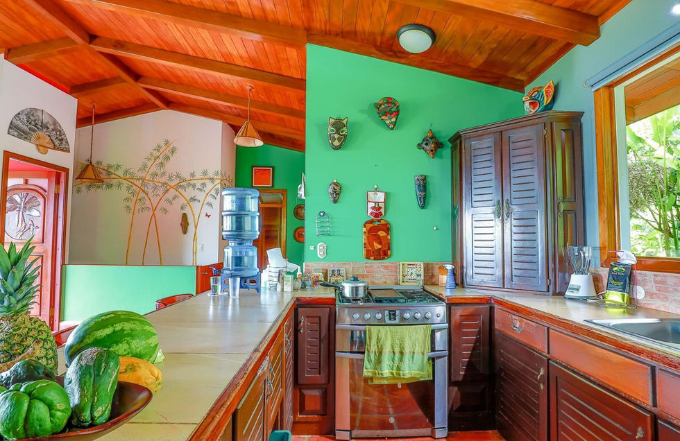 Just a few steps away, the pool is surrounded by mature tropical vegetation and is totally private. The property is fenced, secured and features a security gate. At the top/entry-level is a generous parking area with a covered stall. Adjacent to the parking area is a two-level guest home with charming finishes, a full kitchen, a cozy back porch, and a second level that encompasses an ocean view terrace, bedroom area, a full bathroom, and generous storage. Therefore, the property features three bedrooms, three bathrooms, two complete kitchens, one 'outdoor kitchen,' ample storage, three ocean-view balconies, and comfortable parking for easily four or five vehicles. Perhaps most desirable about the property is its location. The Escaleras mountainside is considered the nicest in the entire Southern Zone, with beautiful estate properties, stunning views, easy access to both Dominical & Uvita. The home is very livable as is, and if remodeled and modernized (the structure is very solid), the owner could enjoy very nice upside on the equity gain. Please inquire today for viewings.