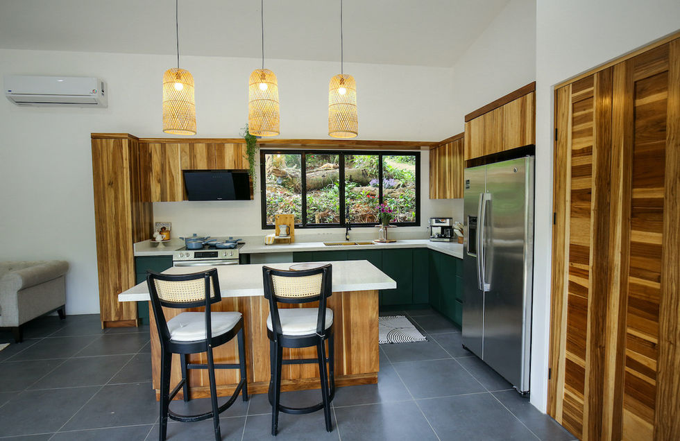 Located in the lush community of Uvita, CASA PALMA VERDE has 3-bedroom, 3-bathroom house seamlessly blends the charm of modern tropical style with the serenity of the surrounding nature. Situated on a 2,928 m2 lot, (0.72 Acres) it offers privacy and stunning garden views from every room. Access is easy, and a 4×4 vehicle is not required, making it an accessible oasis. The property has also enough space to build One or two guest casitas.