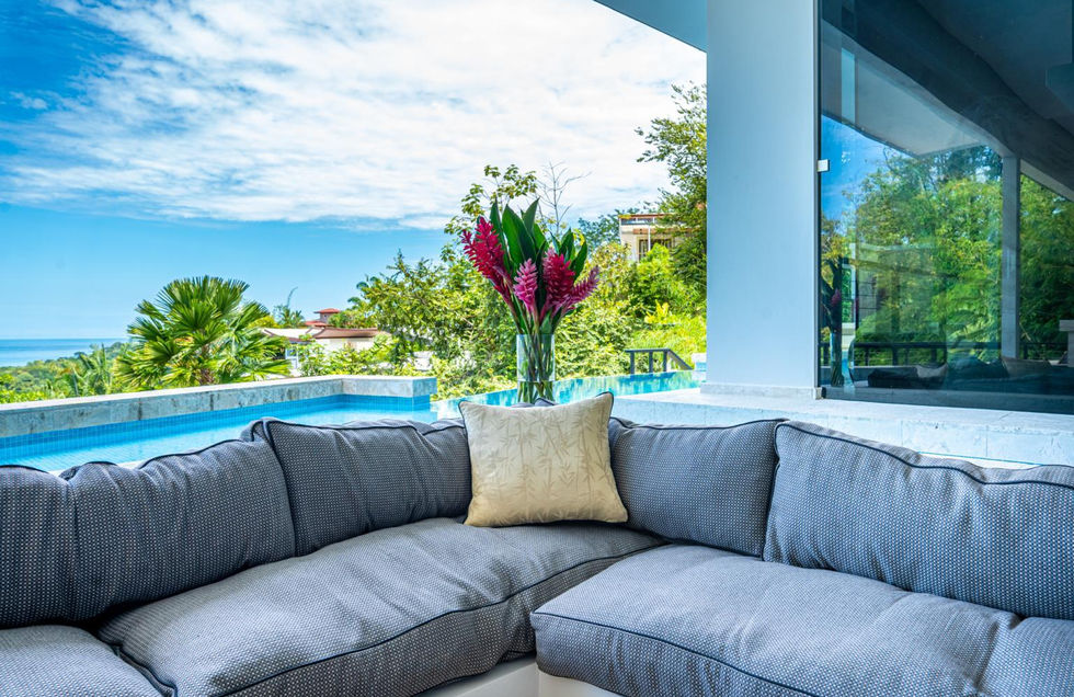 The Cielo Azul Villa (Blue Sky Villa) is a masterpiece located on a hillside in Uvita, Costa Rica with breathtaking ocean views. This 7,000 sq. ft. estate boasts high-end finishes and was designed with the collaboration of builder Epiphany and designer Michael Seven of South Pacific Design.