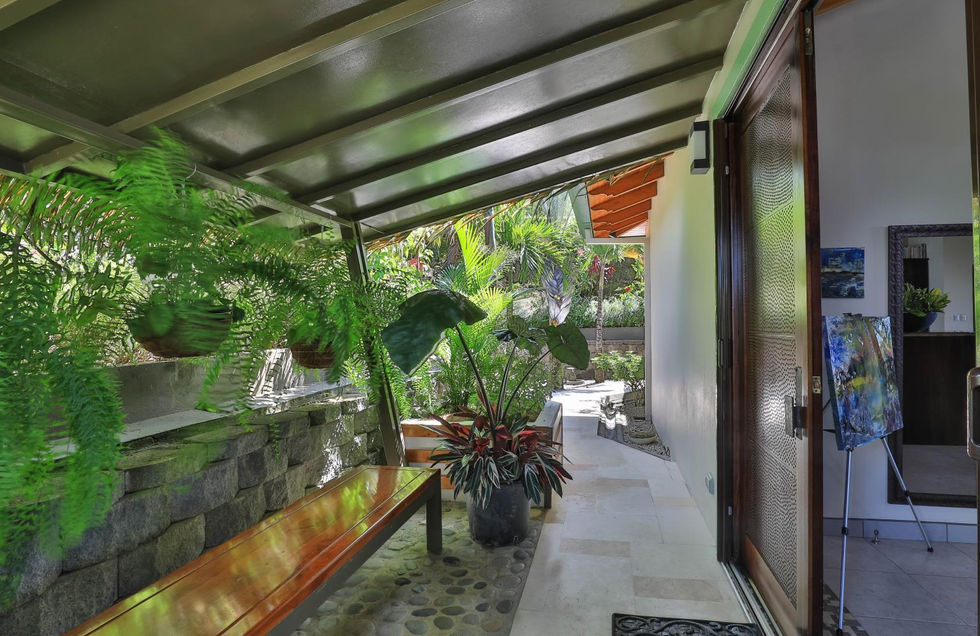 This elegant modern tropical home will be sold with all its custom-made furniture and includes walls decorated with art by the owner, with more available for purchase. Surrounded by lush green mountains, the blue Pacific Ocean, and abundant wildlife, this house will give you the feeling of being at one with nature. Peace and tranquility are included - make this stunning property yours today!